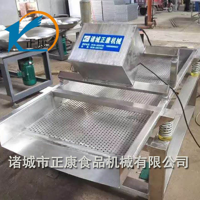 振动沥水机又叫沥水振动筛是一种常用的轻型振动沥水设备,该直线振动沥水筛是利用两台转向相反的振动电机激振的原理,使物料在筛面上作跳跃式直线运动。本机广泛应用于粮食、蔬菜、食品等各行各业中,适用于各种物料不同程度的分级和脱水作业。该设备也用于巴氏杀菌冷却后的食品包装袋表面除水,及蔬菜清洗后表面水分的去除。经振动沥水后,大部分水滴已被去除,剩余水份再经风干机吹干后便可装箱入库。