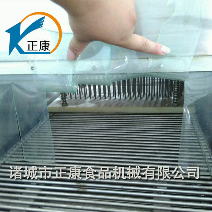 盐水注射机可将腌制液快速均匀的注射到肌肉组织中去,以提高产品的保存性、风味和颜色。传统的腌制方法有干盐搓擦和腌制液浸渍,不仅需要很长时间,盐的扩散也不均匀,盐量无法准确控制,质量不稳定。产品保水性差,出品率低。利用盐水注射法可加快腌制速度和使盐水均匀扩散、渗透,可缩短2/3腌制时间,提高产品质量,改善保水性,提高出品率。